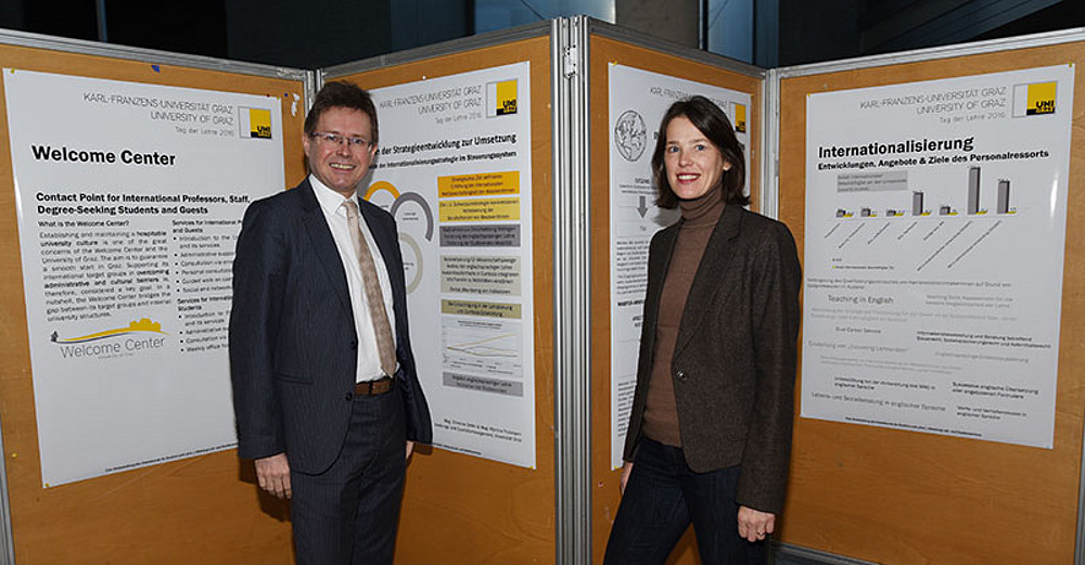 Der Tag der Lehre 2016 war dem Thema "Internationalisierung" gewidmet. Welche Initiativen und Projekte es in diesem Bereich bereits an der Uni Graz gibt, war auf Postern anschaulich und übersichtlich zusammengefasst. Diese Poster gehen jetzt auf Wanderschaft: Insgesamt 18 Stück werden an drei Standorten ab sofort und noch bis 2. Juni 2017 zeigen, dass Internationalisierung gelebter Alltag an der Universität Graz ist.