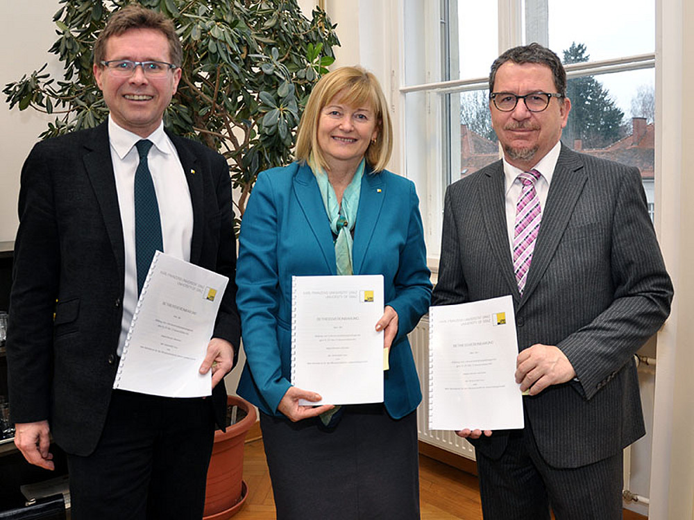 Dem Aufwand bei der Abhaltung von Lehrveranstaltungen trägt die aktualisierte Betriebsvereinbarung zur Bildung von Lehrveranstaltungskategorien Rechnung. Rektorin Univ.-Prof. Dr. Christa Neuper und Ao.Univ.-Prof. Dr. Ingo Kropac, Vorsitzender des Betriebsrates für das wissenschaftliche Universitätspersonal, haben in Anwesenheit des zuständigen Vizerektors, Ao.Univ.-Prof. Dr. Martin Polaschek, die Vereinbarung am 4. März 2014 unterzeichnet. Anregungen von Lehrenden wurden in konstruktiven Gesprächen mit dem Betriebsrat eingearbeitet.