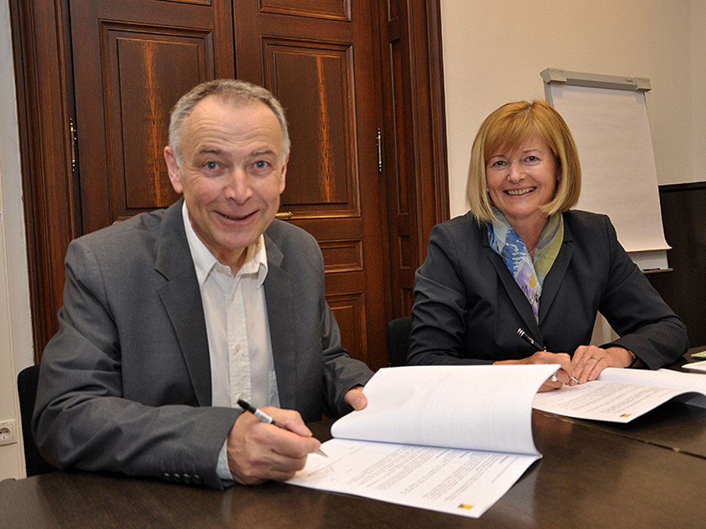 Dekanin Barbara Gasteiger-Klicpera und Rektorin Christa Neuper unterzeichneten die Ziel- und Leistungsvereinbarung der URBI-Fakultät Fotos: Tzivanopoulos, Eklaude, Kastrun