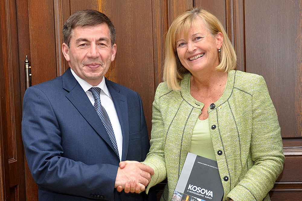 Arsim Bajrami, kosovarischer Minister für Bildung, Forschung und Technologie und Rektorin Christa Neuper. Foto: Uni Graz/Pichler.
