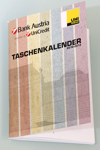 Alle Jahre wirft das neue Studienjahr, das am 1. Oktober 2012 beginnt, seine Schatten voraus. Der druckfrische Taschenkalender bietet bereits jetzt die Möglichkeit, die kommenden Monate gut zu planen. Er wurde wieder mit Unterstützung der Bank Austria hergestellt.