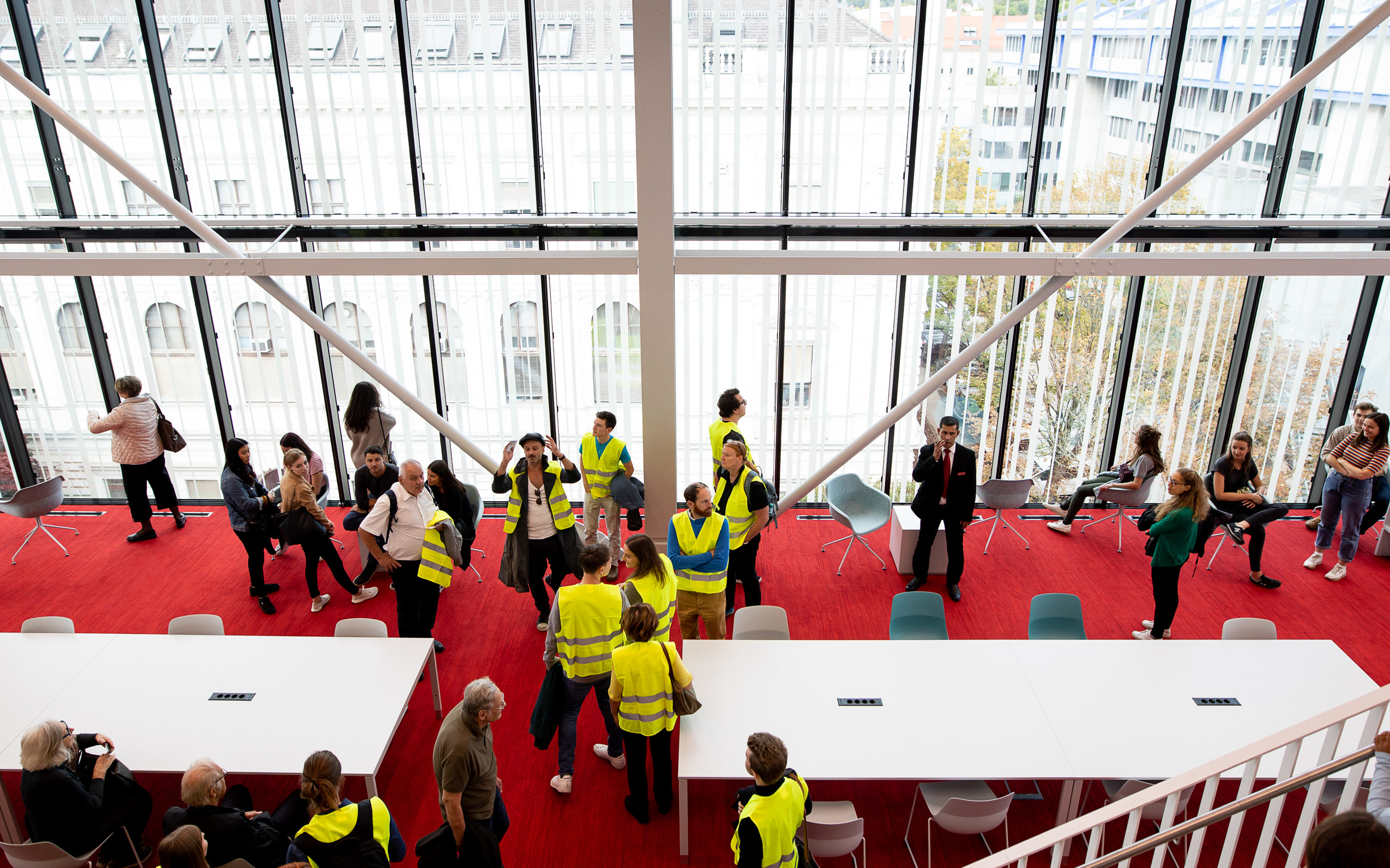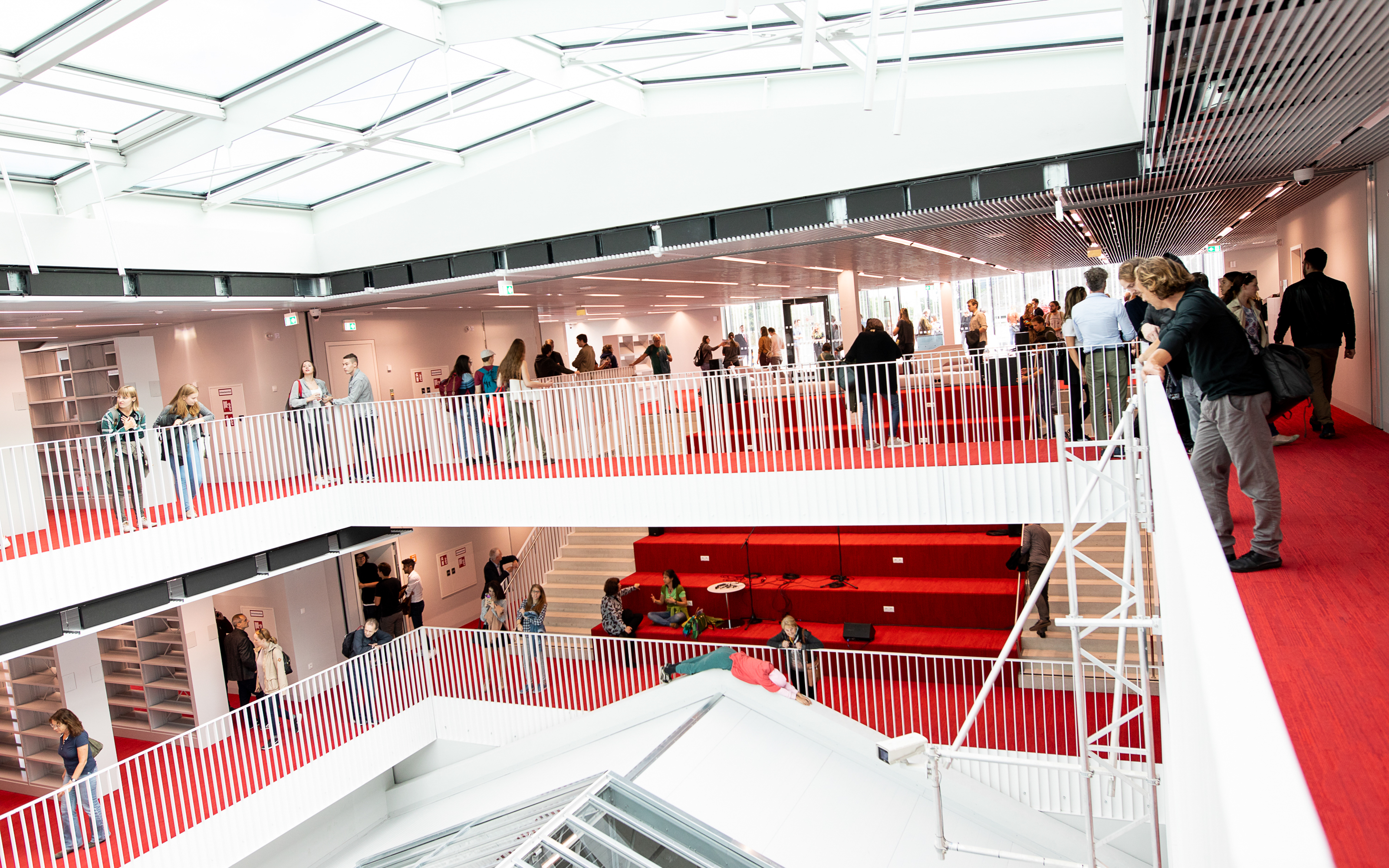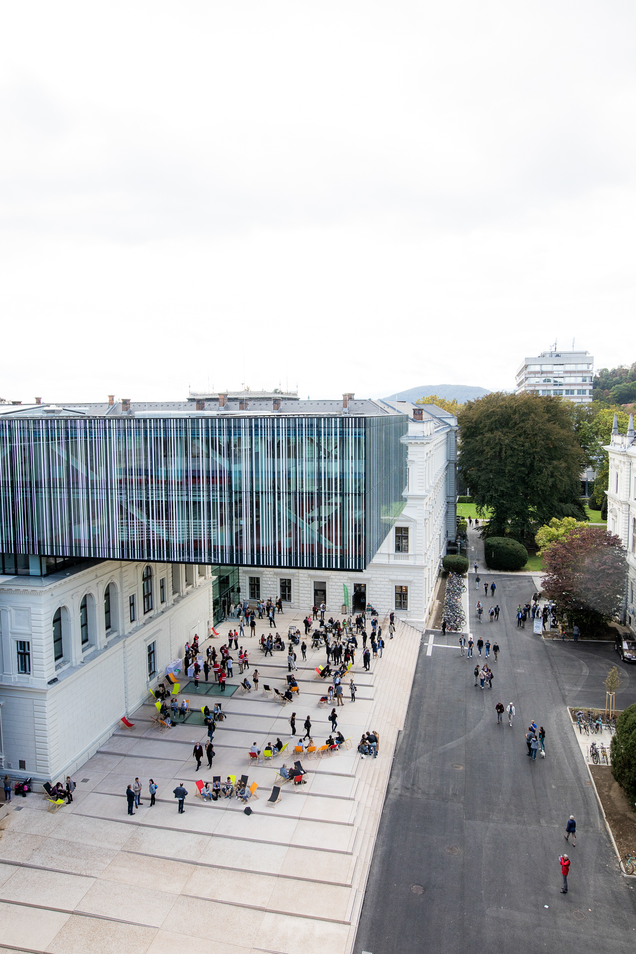 Es war ein Festtag für die Universität Graz. Nach dreijähriger Bauzeit wurde die Bibliothek feierlich eröffnet. Gekommen waren nicht nur alle Freunde der Universitätsbibliothek, sondern alle Menschen, die sich für Bücher, Neue Medien aber auch für Forschung und Wissen interessieren. Mehr als 1000 Leute kamen und konnten am 26. September 2019 das neue Gebäude entdecken. Künstlerische Interventionen, nach einem Konzept von Werner Schrempf, Intendant von La Strada Graz, setzten überraschende Akzente und lenkten den Blick auf die Architektur und die Geschichte, die Entwicklungen und die Zukunft der drittgrößten und modernsten Bibliothek Österreichs. Bei einer Vortragsreihe im neuen Alumni-Hörsaal konnten Wissbegierige die Profilbereiche der Universität Graz näher kennenlernen. Am Abend wurde der neue Hörsaal mit StifterInnen und Ehrengästen ofiiziell eröffnet.