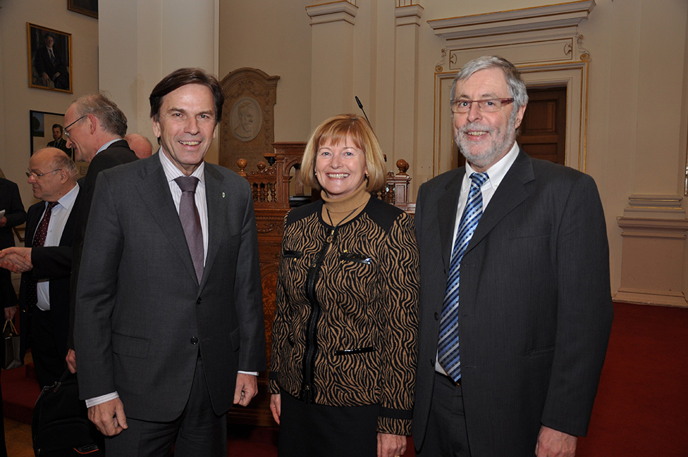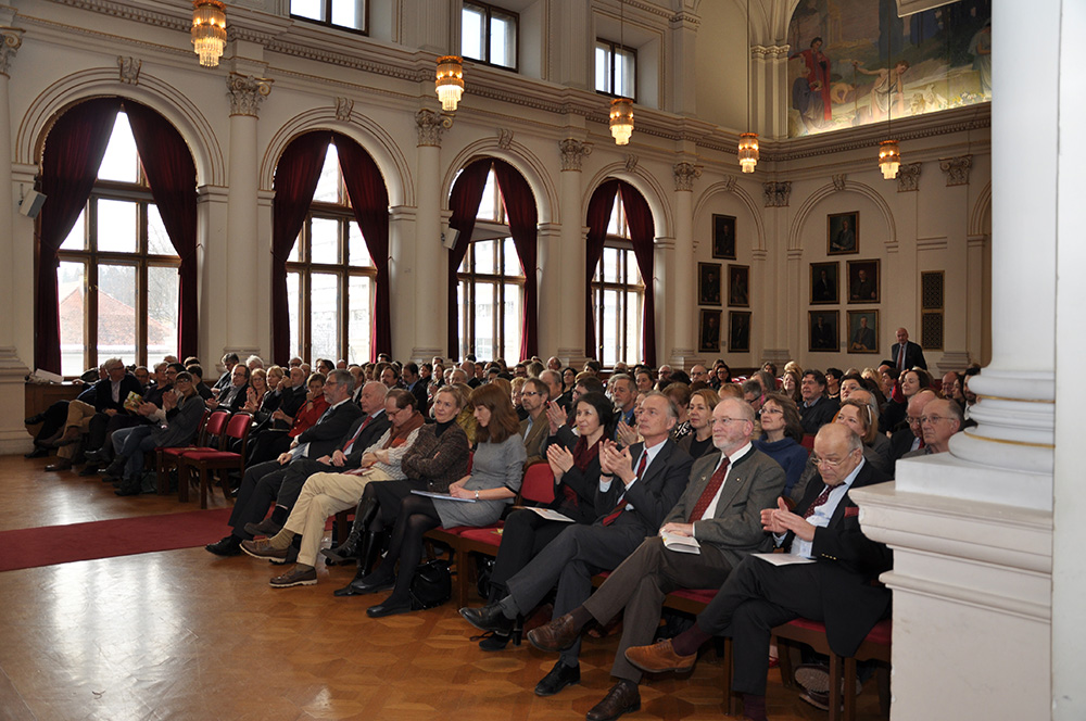 Hochkarätig besetzt war nicht nur die wissenschaftliche Veranstaltung. Beim anschließenden Festakt gratulierten unter anderem: Rektorin Christa Neuper, LH Franz Voves, Landesrätin Bettina Vollath, Altbürgermeister Alfred Stingl, Wolfgang Muchitsch und Peter Pakesch (Joanneum Graz), uniko-Generalsekretärin Elisabeth Fiorioli, Honorarkonsul Rudi Roth und viele andere. „Konrad hat als Rektor und Dekan einen wesentlichen Beitrag zur Neupositionierung der Universität geleistet“, würdigte Rektorin Neuper Konrads Verdienste und seine „große internationale Strahlkraft“.