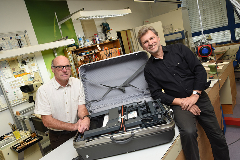 Das Gerät passt in einen handelslüblichen Schalenkoffer, der bei Flugreisen problemlos aufgegeben werden kann ©Uni Graz/Tzivanopoulos