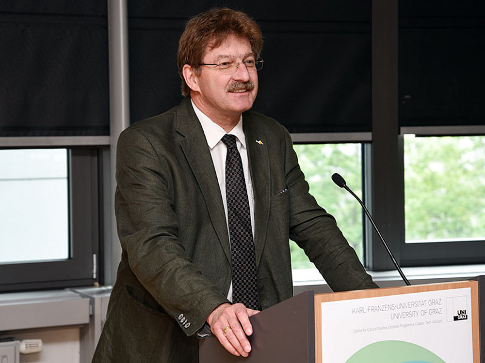 Vizerektor Peter Scherrer eröffnete die Tagung im RESOWI-Zentrum und unterstrich dabei unter anderem die Bedeutung der strukturierten Doktoratsausbildung, die DoktorandInnen von Beginn an in vielfältige wissenschaftliche Aktivitäten einbindet und es ihnen durch eine Anstellung ermöglicht, sich ganz auf ihre Forschungen zu konzentrieren.