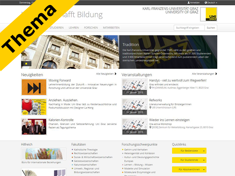 - Das modernisierte, übersichtliche Design der Uni-Graz-Homepage passt sich automatisch den Endgeräten Tablets und Smartphones an