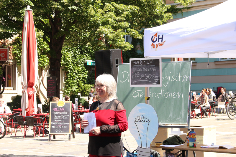Auch Lehrende der Karl-Franzens-Universität tragen im Schwerpunktmonat Mai die freie Bildung nach außen. Ob Erziehungs- und Bildungswissenschaften, Geschichte oder Neue Medien: Zahlreiche spannende Diskussionen und Vorträge fanden bereits im öffentlichen Raum statt - etwa auf der Murinsel, am Tummelplatz oder im Dachgeschoß des Kaufhauses Kastner & Öhler.