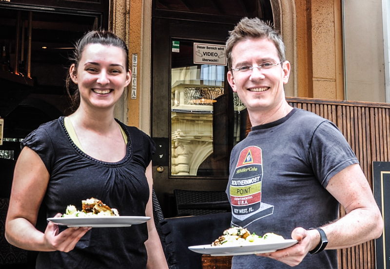 Bekannt ist das Bica in der Mozartgasse 1 für seine kleine und feine Nachtszene. Tagsüber mausert sich das Mini-Lokal zu einem Mittagsbistro. Wo in den frühen Morgenstunden sonst nur g‘schmackige Schinken-Käsetoasts über den Tresen wandern, kocht Inhaber Michael Zuzanek täglich frisch in seiner kleinen, nicht einmal zwei Quadratmeter großen Küche mit Freude auf. Zur Auswahl ein Gericht: Am Testtag gab es Hühnerbrust gefüllt mit getrockneten Tomaten, Schafskäse und Basilikum, als Beilage Petersilerdäpfel. Nach nicht einmal zehn Minuten servierte der Küchenchef persönlich die Gerichte. Eines muss man sagen: eine überschaubare Portion, aber geschmacklich ein Treffer. Vor allem die Kartoffeln haben überzeugt. Vor- und Nachspeise fielen bei diesem Menü aus, der Preis von 7,90 Euro könnte aber noch einen Salat vertragen.