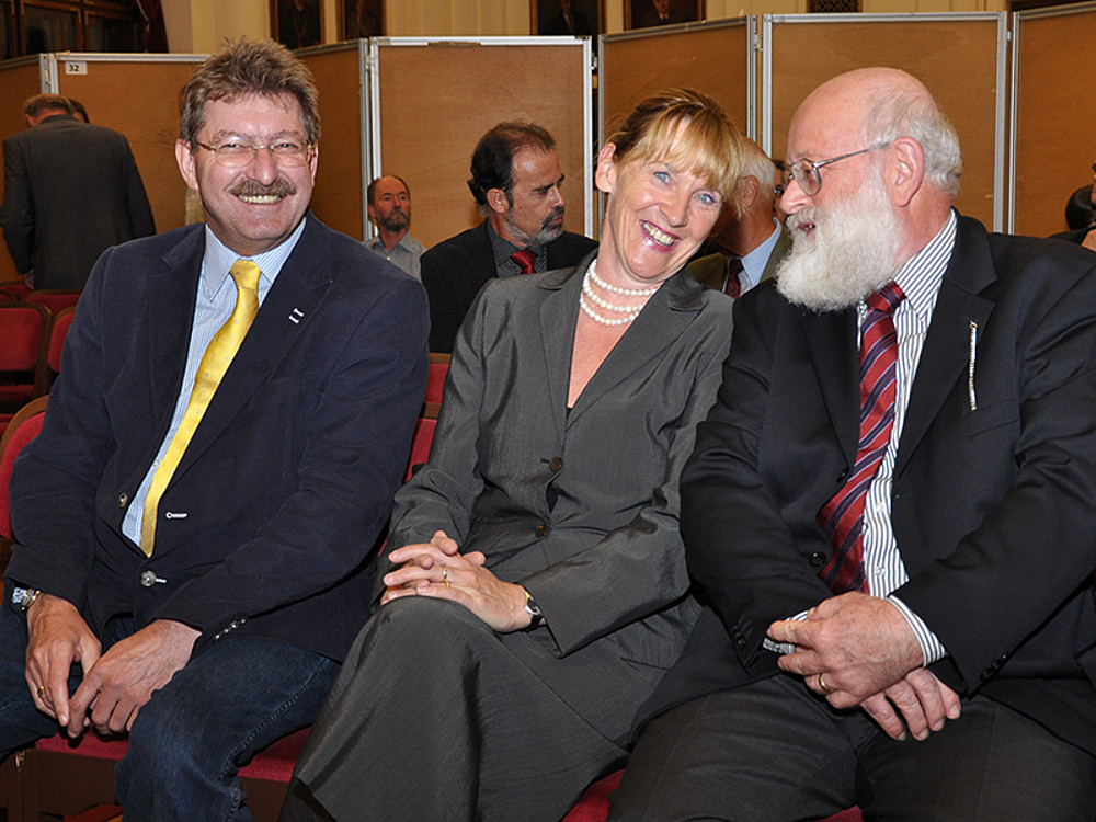 Unter den zahlreichen GratulantInnen Vizerektor Scherrer (links) und Sektionschefin Weitgruber