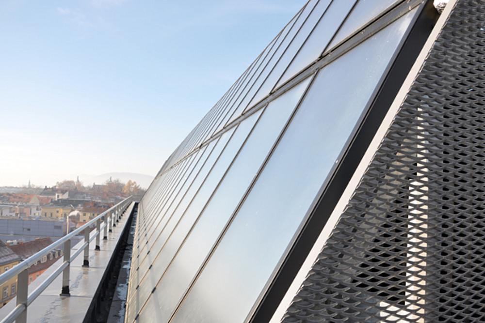 Mit einer Leistung von 290.000 KW/H pro Jahr erzeugt die Anlage nicht nur Warm- und Heizwasser für das Gebäude selbst, sondern versorgt darüber hinaus auch die Mensa und das Studierendenheim mit Energie. Die Wärme – vor allem in den Sommermonaten – wird als solare Kühlung für die Lüftungsanlage in den Laborräumen genutzt. Diese erste Anlage dieser Art in Österreich liefert somit einen entscheidenden Beitrag zur Senkung der Betriebskosten und zugleich zur Nachhaltigkeit des Projektes.