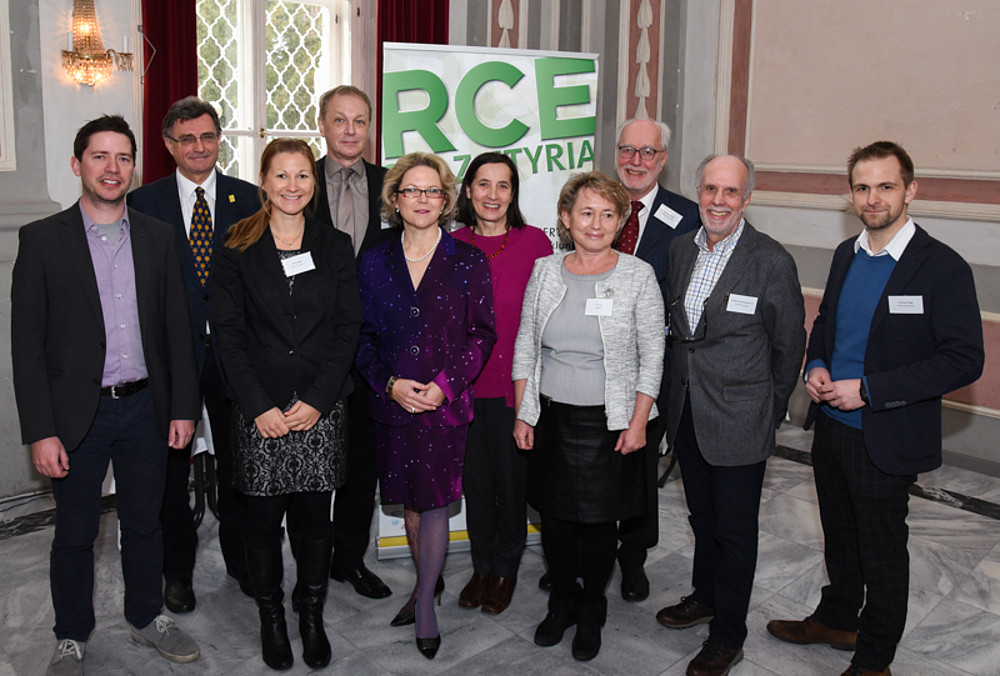 Mag. Lukas Priebsch, SUPERAR Kinderchor, Dr. Günther Pfaffenwimmer, Bundesministerium für Bildung und Frauen, Mag. Petra Wlasak, RCE, Dr. Peter Iwaniewicz, Bundesministerium für Land- und Forstwirtschaft, Gemeinderätin Univ.-Prof. Dr. Daisy Kopera, Mag. Gabriele Eschig, Österreichische UNESCO Kommission, Dr. Evi Frei, Bundesministerium für Wissenschaft, Forschung und Wirtschaft, Dr. Hermann Becke, SEKEM Österreich, O.Univ.-Prof. Dr. Friedrich Zimmermann und Mag. Thomas Drage vom RCE (v.l.) Fotos: Uni Graz/Tzivanopoulos