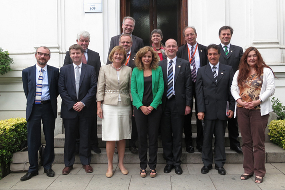 Zusammentreffen der österreichischen Delegation – darunter die RektorInnen Christa Neuper (Uni Graz), Richard Hagelauer (Uni Linz) und Wilfried Eichlseder (Montanuniversität) sowie bmwf-Generalsekretär Friedrich Faulhammer – mit VertreterInnen von CONICYT, der chilenischen Kommission für Forschung und Technologie.