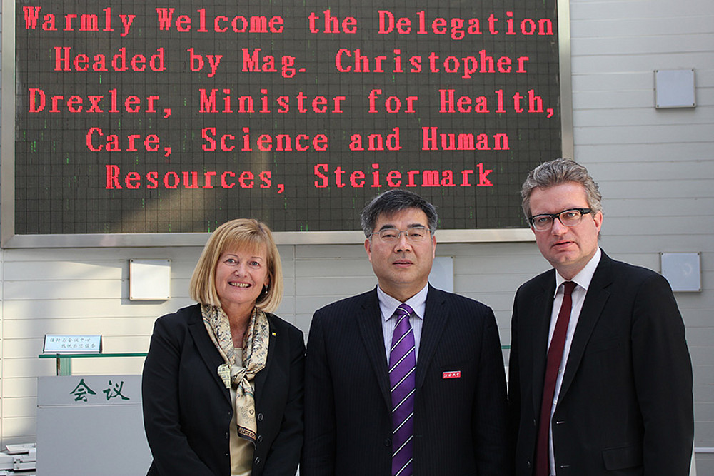 Im weltweiten Netzwerk der Uni Graz mit mehr als 500 Partner-Universitäten spielen neben der Schwerpunktregion Südosteuropa Verbindungen nach China eine bedeutende Rolle. Im Zuge einer China-Reise der steirischen Delegation unter der Leitung von Wissenschaftslandesrat Christopher Drexler, der auch Rektorin Christa Neuper und Dekan Joseph Marko angehörten, wurde zwischen 4. und 7. April 2016 das Uni-Netzwerk in Nanjing und Shanghai verdichtet.