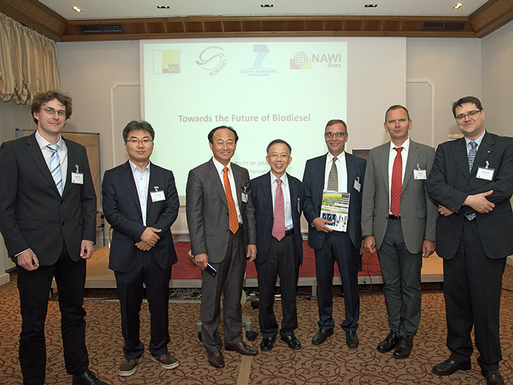 Erforschen als internationale Partner federführend die Zukunft des Biodiesel: Olaf Schröder, Deog-Keun Kim, Min-Sun Park, Jin-Suk Lee, Martin Mittelbach, Jürgen Krahl und Sigurd Schober
