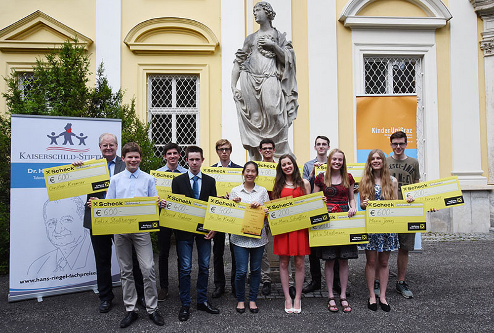 Zwölf steirische MaturantInnen sind in ihren vorwissenschaftlichen Arbeiten in den Fächern Biologie, Chemie, Mathematik und Physik diesen Themen auf den Grund gegangen. Für ihre kritische Auseinandersetzung sowie eigenständigen Recherchen und Analysen erhielten die SchülerInnen am Mittwoch, 6. Juli 2016, an der Karl-Franzens-Universität Graz die Dr. Hans Riegel-Fachpreise. Verliehen wird die Auszeichnung, die mit heuer einem Gesamtwert von 5.800 Euro dotiert ist, von der Gemeinnützigen Privatstiftung Kaiserschild, gegründet von Dr. Hans Riegel, dem Erben des Haribo-Süßwarenkonzerns. In der Steiermark organisiert den Wettbewerb die KinderUniGraz.