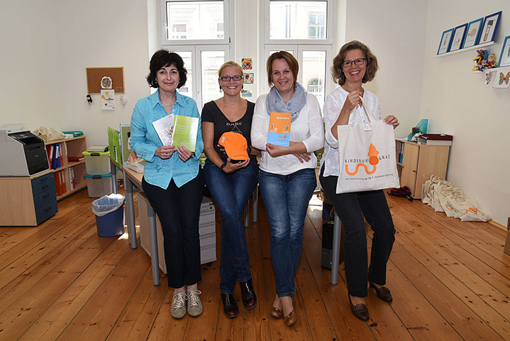 Ein neues Quartier teilen sich seit Juni 2016 Mag. Irene Trummer, MA, von der Beratungsstelle und die MitarbeiterInnen der KinderUni, Jutta Fenk-Esterbauer, MA, Gabriela Tröbinger, MA und Corinna Schloffer: Sie sind gemeinsam in die Räumlichkeiten der Elisabethstraße 41 gezogen.