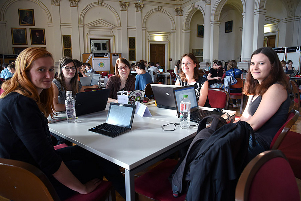 Schlaflos in der Aula: Mehr als 120 Studierende schlugen sich am 9. Juni 2017 an der Karl-Franzens-Universität Graz bei der Langen Nacht der aufgeschobenen Seminararbeiten dieselbige um die Ohren. Egal ob Seminar-, Master- oder Doktorarbeit: anstehende wissenschaftliche Texte mit professioneller Unterstützung und in einem motivierenden Umfeld voranbringen oder auch fertigstellen, das ist die Intention der österreichweit einzigartigen Initiative. Studien-Vizerektor Martin Polaschek gab den Startschuss zur mittlerweile fünften Schreibnacht und wünschte viel Erfolg: „Die Atmosphäre der Aula ist etwas ganz Besonderes, die auch zum Schreiben anregen soll.“