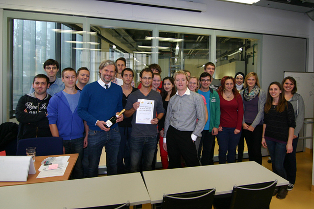Das Offene Labor Graz an der Karl-Franzens-Universität Graz feierte dieser Tage Jubiläum: Es konnten die 2000 BesucherInnen in diesem Jahr begrüßt werden. Aus diesem Anlass überreichten die Projektverantwortlichen - Assoz. Univ.-Prof. Dr. Helmut Jungwirth, Dr. Fritz Treiber und Mag. Maria Klicznik - der 8. Klasse des BRG Klusemann einen Gutschein für einen Laborkurs im Offenen Labor Graz.