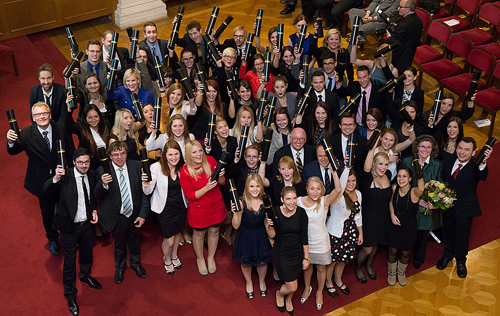 Die AbsolventInnen des 18. Medienlehrgangs der Karl-Franzens-Universität Graz feierten am 17. Oktober 2013 in der Aula ihren erfolgreichen Abschluss. Die 56 TeilnehmerInnen erhielten nach dem Schwur, ihr Wissen zum Wohle der Gesellschaft einzusetzen, die Rolle mit dem Zertifikat, das sie als „Akademische Medienfachfrau“ bzw. „Akademischer Medienfachmann“ ausweist.