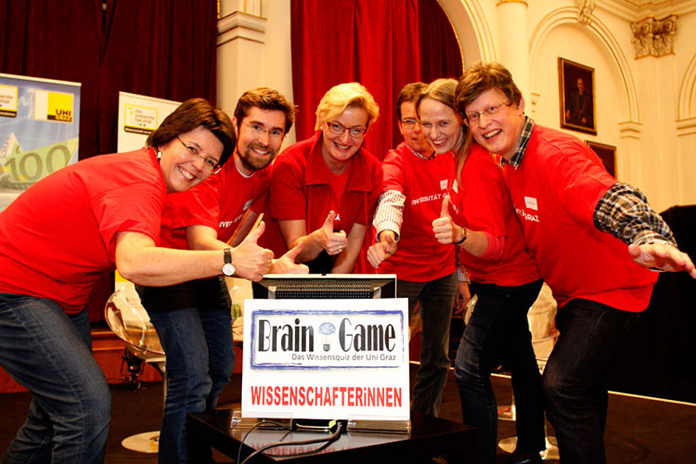 Wissen, Geschicklichkeit, Spaß! Und diesem Motto lockte das Wissensquiz der "7. fakultät", Brain Game, Ende November mehr als 300 BesucherInnen in die Aula der Uni Graz, die ein atemloses Kopf-an-Kopf-Rennen zwischen WissenschafterInnen und Studierenden erlebten. Erst im letzten und aufgrund des knappen Punktestandes alles entscheidenden Spiel konnten sich die ForscherInnen den Sieg sichern.