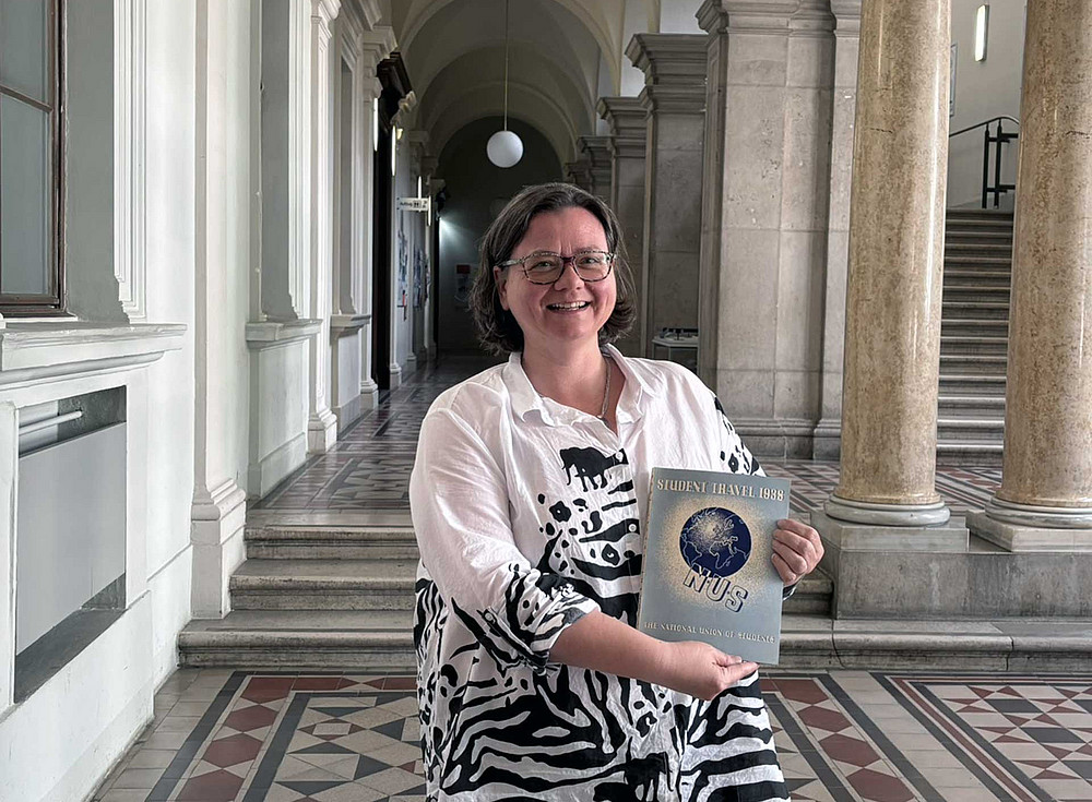 „Die Broschüre könnte als Belegexemplar an die Universität gelangt sein“, vermutet die Historikerin. Darin ist nämlich ein Inserat der Universität Graz enthalten. Beworben werden „Summer Vacation Courses for Foreigners“, darunter Vorlesungen zu „The Civilisation of the 20th Century, with Language, Literature and Folkore”.