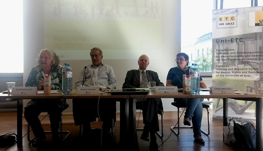 Soziale Teilhabe für alle - wie das gelingen kann, ist nicht nur Gegenstand der Forschung. Auch öffentliche Diskussionen beschäftigen sich vermehrt mit dieser Frage. Wie speziell Menschen in der zweiten Lebenshälfte eine inklusive Zukunft erleben können, war Thema des vom Europäische Trainings- und Forschungszentrum für Menschenrechte und Demokratie (UNI-ETC) organisierten Podiumsgesprächs "Menschenrechte der älteren Generation" am 27. Mai 2014.