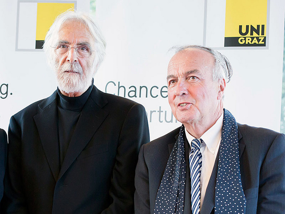 Gerhard Larcher hat an der Uni Graz den Schwerpunkt „Theologie – Kultur – Ästhetik“ aufgebaut und geleitet und damit internationale Anerkennung gewonnen. Gleiches gilt für seine Pionierleistung, Theologie und Film in Dialog miteinander zu bringen. Seit über 20 Jahren arbeitet Larcher unter anderem mit Michael Haneke, Oscar-Preisträger, Regisseur und Ehrendoktor der Uni Graz, zusammen.