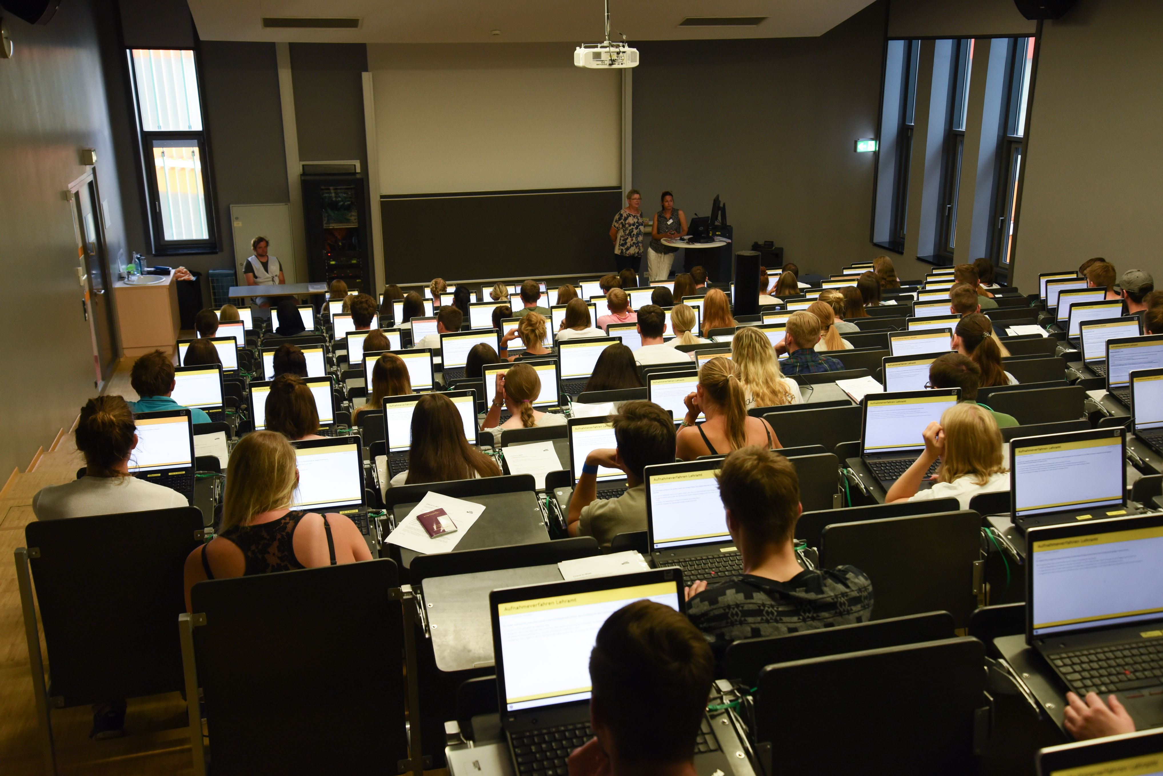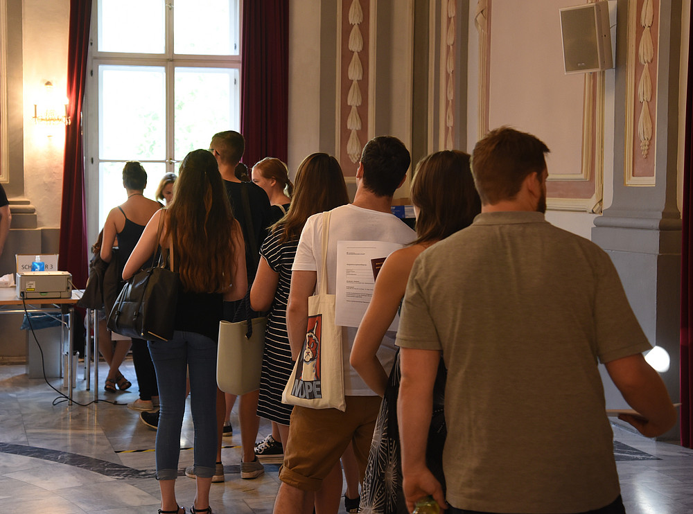 Der Aufnahmereigen hat begonnen: Am heutigen ersten Tag für das Zulassungsverfahren Lehramt Sekundarstufe Allgemeinbildung waren 479 der ursprünglich 580 angemeldeten Personen an die Universität Graz gekommen, um den Computertest zu absolvieren. Pünktlich um 8:15 Uhr war der Check-in im Meerscheinschlössl in der Mozartgasse geöffnet, kurz darauf starteten auch die Anmeldeschalter im WALL-Zentrum in der Merangasse 70. Morgen Dienstag ist der zweite und letzte Tag für die Zulassung-Lehramt, die Endergebnisse werden in den nächsten Tagen erwartet. Alle Infos unter: https://zulassung-lehramt.uni-graz.at/