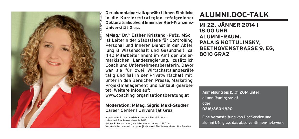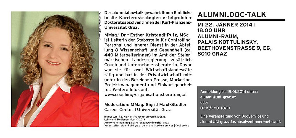 Der alumni.doc-talk gewährt Ihnen Einblicke in die Karrierestrategien erfolgreicher DoktoratsabsolventInnen der Universität Graz.