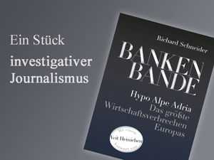 Manchmal ist die Wirklichkeit spannender als jeder Krimi: Richard Schneiders erstes Buch zum größten Bankenskandal der Zweiten Republik („Tatort Hypo Alpe Adria“) zählt zu den erfolgreichsten Sachbüchern der letzten Jahre – sein neuestes Buch „BANKENBANDE – Hypo Alpe Adria: Das größte Wirtschaftsverbrechen Europas“ – gilt schon heute als Standardwerk. Am 28. Oktober 2015 ist Schneider, gemeinsam mit Krimi-Starautor Veit Heinichen, der das Vorwort zu BANKENBANDE verfasst hat, zu Gast beim alumni UNI graz und spricht über seine jüngste Publikation sowie über investigativen Journalismus im Allgemeinen.
