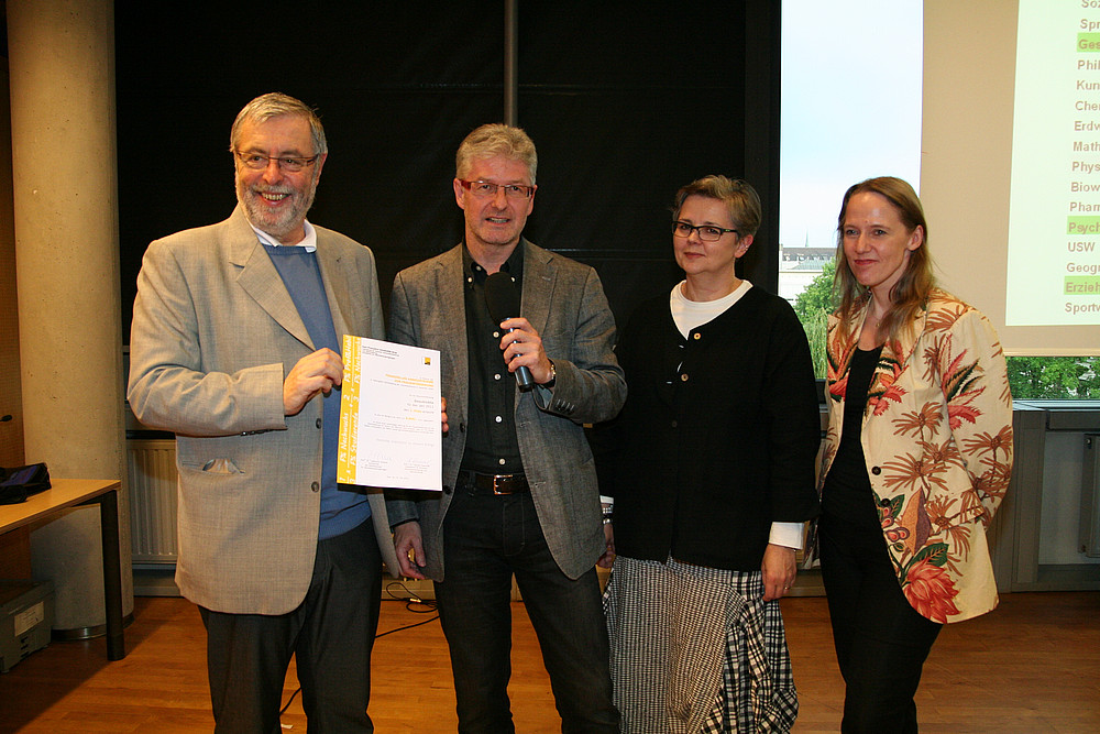 Auszeichnung von drei Wissenschaftszweigen der Universität Graz für hervorragende Nachwuchsförderung, Einstiegschancen und Aufstiegschancen im Sinne von Gleichstellung von Männern und Frauen an unserer Universität. Überreichung durch die Vorsitzende des Arbeitskreises für Gleichbehandlungsfragen, Univ.-Prof. Mag. Dr. Katharina Scherke und Vizerektorin Univ.-Prof. Dr. Renate Dworczak.