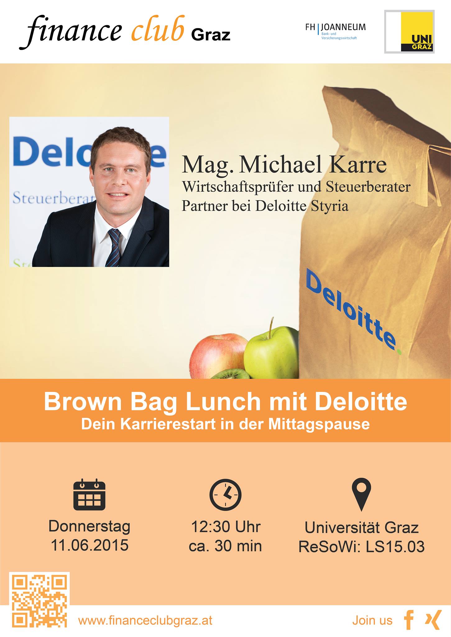 Der Finance Club der Universität Graz lädt euch sehr herzlich zum Brown Bag Lunch mit dem attraktiven Arbeitgeber Deloitte ein: