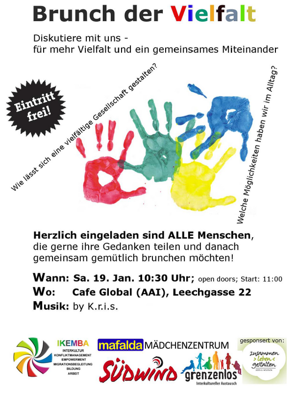 Es sind ALLE Menschen (WeltverbessererInnen, SchülerInnen-StudentInnen, ProfessorenInnen,….) egal welchen Backgrounds herzlich eingeladen ihre Gedanken einzubringen und danach gemeinsam in gemütlicher Atmosphäre zu brunchen!