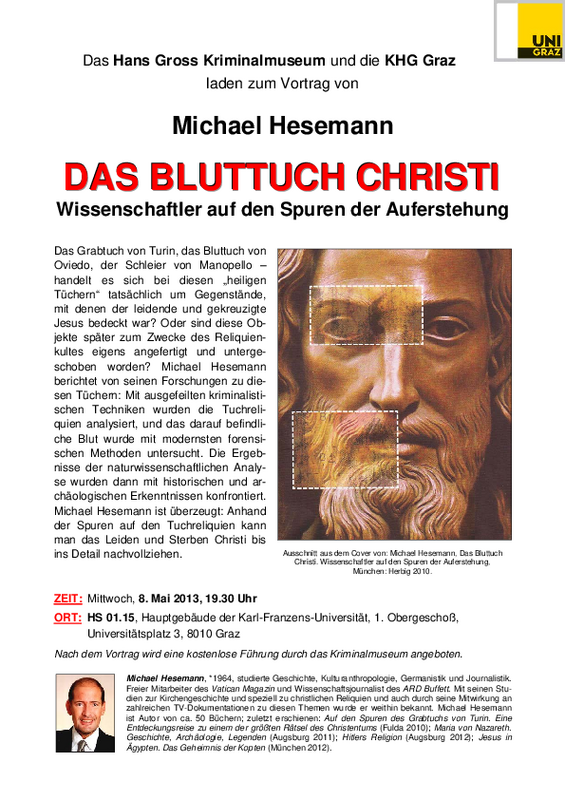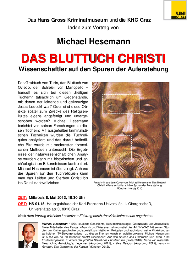 Universität Graz Veranstaltungen DAS BLUTTUCH CHRISTI - Wissenschaftler auf den Spuren der Auferstehung
