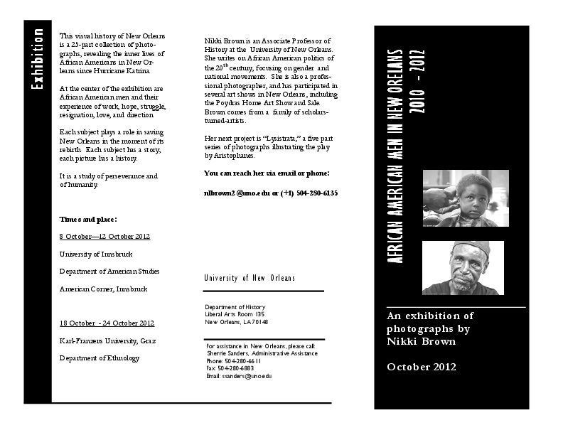 „African American Men in New Orleans 2010-2012“ mit Fotografien von Prof. Nikki Brown (University of New Orleans) statt.