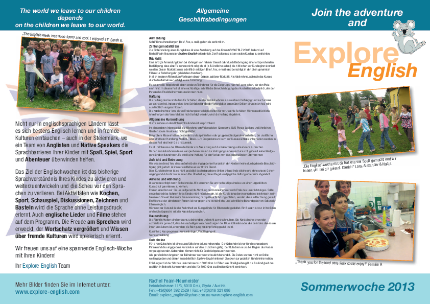 Das Ziel der Englischwoche ist das bisherige Sprachverständnis Ihres Kindes zu aktivieren und weiterzuentwickeln und die Scheu vor den Sprachen zu verlieren. Der Freude am Sprechen wird erweckt, der Wortschatz vergrößert und Wissen über fremden Kulturen wird spielerisch erlernt.