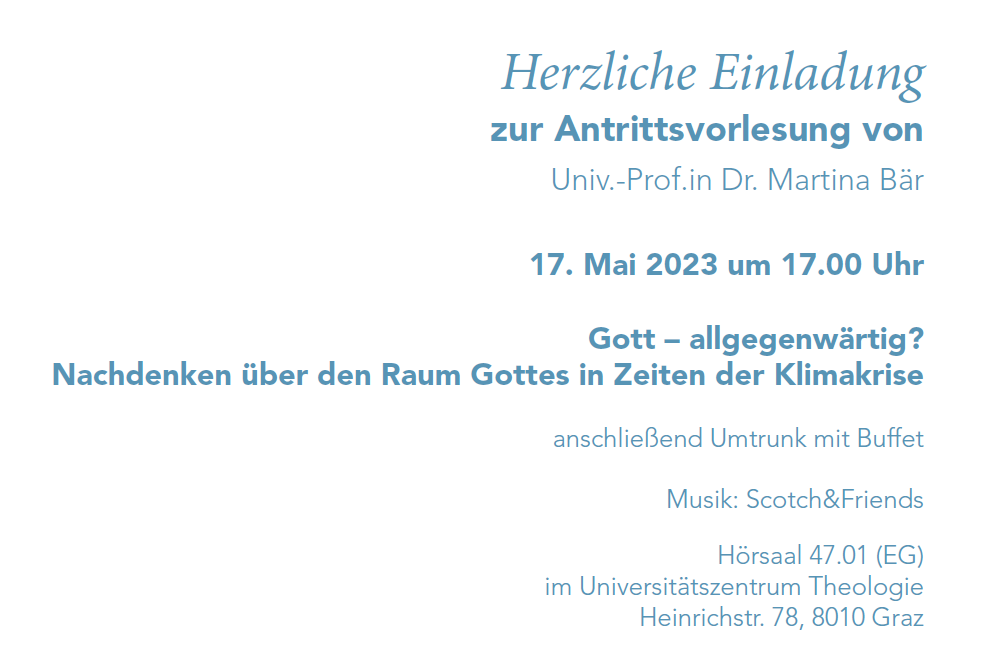 Einladung zur Antrittsvorlesung von Univ.-Prof.in Dr. Martina Bär
