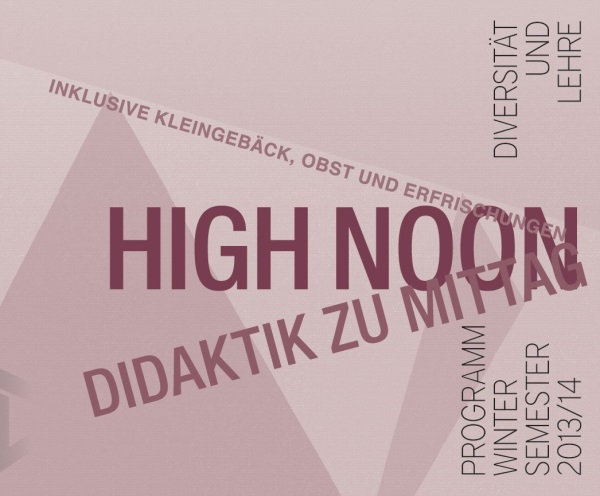 Die bei "High Noon - Didaktik zu Mittag" angebotenen Impulsreferate, Erfahrungsberichte und Gespräche mit geladenen Gästen, die insgesamt nie länger als eine Stunde dauern, sollen Angelegenheiten der universitären Lehre durch einen profunden kurzen Input aufgreifen und das alltägliche eigene Lehrhandeln mit neuen Perspektiven versorgen.
