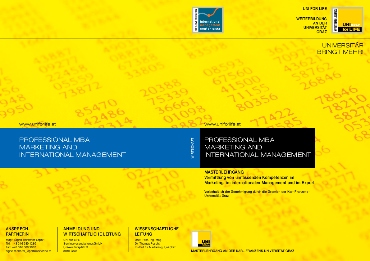 Das International Management Center Graz, Teil der Weiterbildungsgesellschaft der Karl-Franzens-Universität Graz, veranstaltet am Donnerstag, den 13. Juni 2013 ab 18:00 Uhr einen kostenlosen Infoabend zu den 3 neuen berufsbegleitenden, postgradualen Masterlehrgängen: