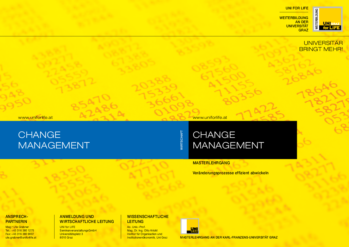 UNI for LIFE, die Weiterbildungsgesellschaft der UNI Graz, veranstaltet am 04.06.2013 um 18.00 Uhr einen Infoabend zum berufsbegleitenden Masterlehrgang "Change Management".
