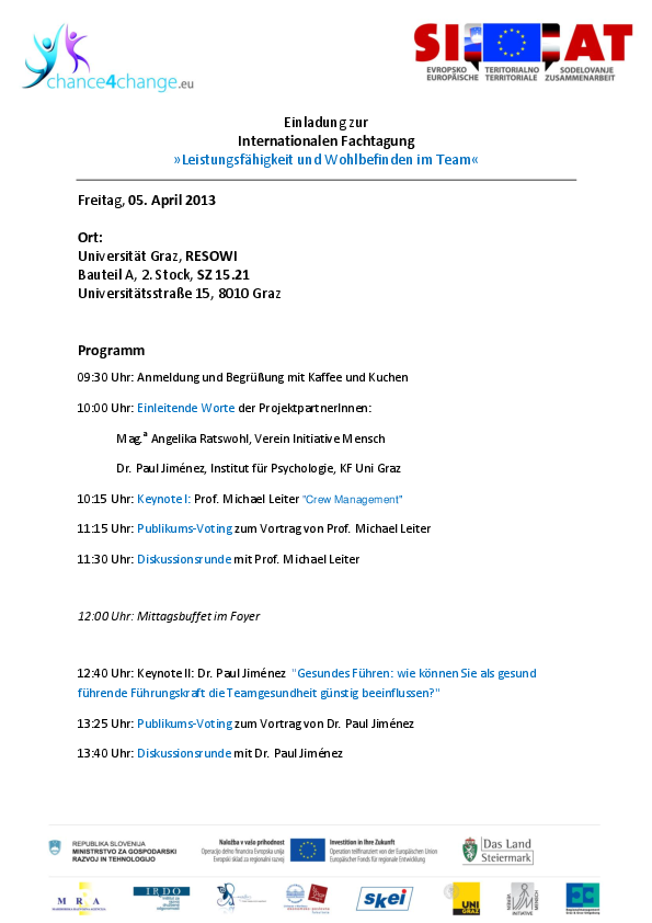 Die im Rahmen des Projekts "chance4change" durchgeführte internationale Fachtagung findet ganztätig am 5. April 2013 an der Universität Graz (RESOWI) statt.