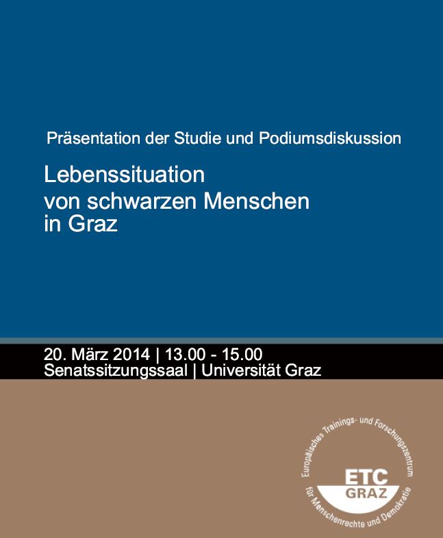 Im Rahmen des Forschungsschwerpunktes Heterogenität und Kohäsion der Universität Graz hat das ETC Graz in Kooperation mit dem Fachbereich Zeitgeschichte am Institut für Geschichte mit Mitteln des Zukunftsfonds Österreich, des Landes Steiermark, der Stadt Graz und der Universität Graz eine Studie zur Lebenssituation von schwarzen Menschen in den vier Städten Graz, Linz, Salzburg und Innsbruck erstellt.