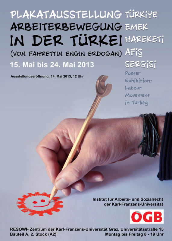 Fahrettin Engin Erdogan absolvierte ein Studium in der Malerei-Abteilung der MÜ-Universität der Schönen Künste. Ab 1994 wurden seine Artikel und Karikaturen in unterschiedlichen Magazinen und Zeitungen veröffentlicht. Weiters entwarf er Poster, Cover für CDs und Bücher. In den Jahren 2003-2006 arbeitete er als Koordinator für Presse und Publikation in der Konföderation "KESK" für Gewerkschaften des öffentlichen Dienstes, der größten Gewerkschaft der Türkei. Die Ausstellung präsentiert einen Teil der Plakate, die er für die Arbeiterbewegung in der Türkei entworfen hat.