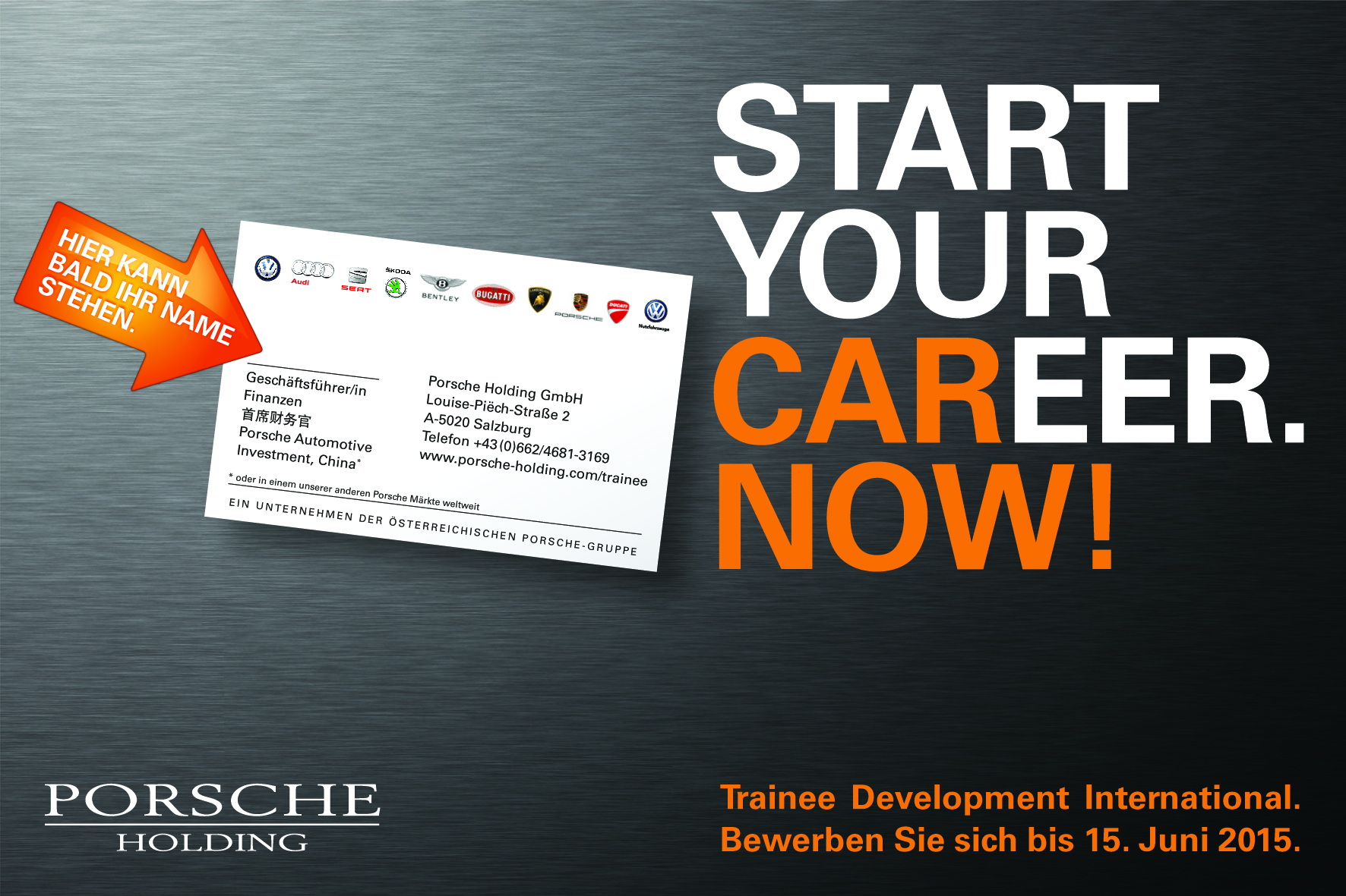 Am Donnerstag, 7.5. stehen Personalverantwortliche die Porsche Holding Salzburg von 10.00 - 16.00 Uhr vor dem RESOWI-Zentrum der Uni Graz Rede und Antwort zu beruflichen Einstiegsmöglichkeiten. Die Porsche Holding Salzburg (PHS) ist das größte Automobilhandelshaus Europas mit über 32.300 Mitarbeitern in 24 Ländern weltweit. Wer im wahrsten Sinne des Wortes grenzenlose Einsatz- und Entwicklungsmöglichkeiten im internationalen Umfeld eines Großkonzerns sucht, findet bei uns also beste Voraussetzungen.