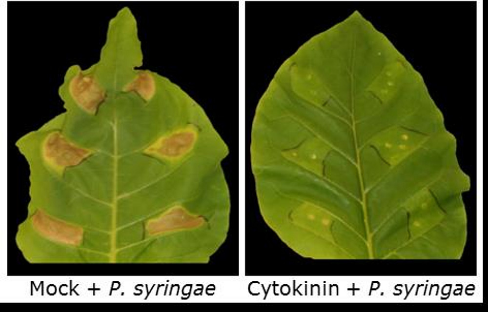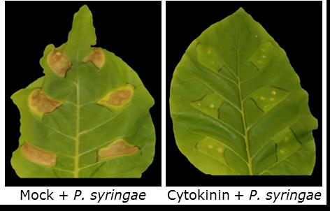 Dominik Grosskinsky (Kopenhagen): Cytokinins are phytohormones that are well-known to be involved in various regulatory processes of plant physiology and development, but have only recently been shown to modulate plant immunity. Complementary experimental approaches showed that cytokinins enhance resistance against the virulent hemibiotrophic pathogen Pseudomonas syringae in tobacco. The cytokinin-mediated resistance strongly correlated with an increased level of bactericidal activities and was shown to depend on the two major antimicrobial phytoalexins in tobacco, scopoletin and capsidiol. The specificity of the underlying mechanism is evident from a differential effect of the cis- and trans-isomers of zeatin. The integration into the complex plant defense network is evident from the involvement of salicylic acid and the negative interference of abscisic acid. Additional studies revealed the presence of cytokinin-mediated pathogen defenses also in other plant species such as Arabidopsis and rice. The mechanism of cytokinin-triggered immunity was also shown to be the basis for the biocontrol activities of a Pseudomonas fluorescence strain that had been identified based on its growth promoting activity. Complementary gain- and loss-of-function approaches with the host plant and the biocontrol strain identified the microbial cytokinin production as a key determinant of the protection of the plant from a bacterial pathogen. The implications of this mechanism for the coevolution of host plants and cytokinin-producing agonists and pathogens and the possible practical application in agriculture to engineer pathogen resistance as well as abiotic and biotic cross tolerance are discussed.