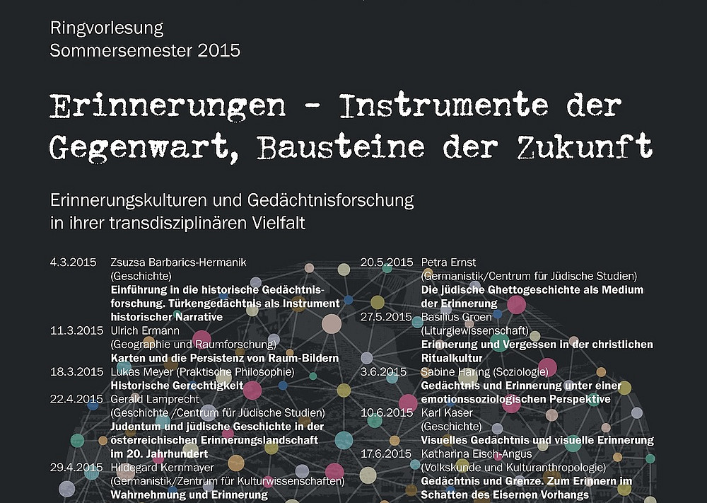 Weitere Informationen zur Ringvorlesung finden Sie in UNIGRAZonline und in der Rubrik „Neuigkeiten“ auf der Homepage des Zentrums für Kulturwissenschaften.