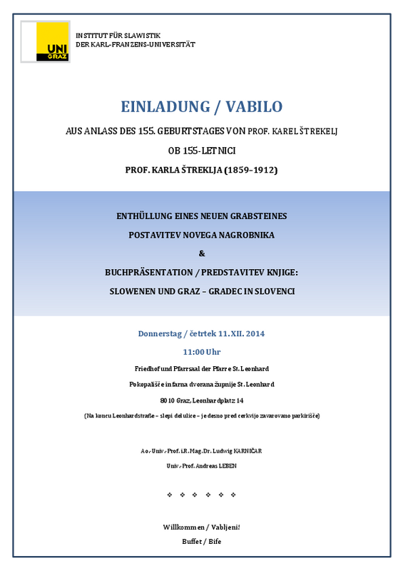 Bei dieser Gelegenheit wird auch der Sammelband zur Tagung "Slowenen und Graz II", die Ende Februar 2014 am Institut für Slawistik stattgefunden hat, der interessierten Öffentlichkeit präsentiert.