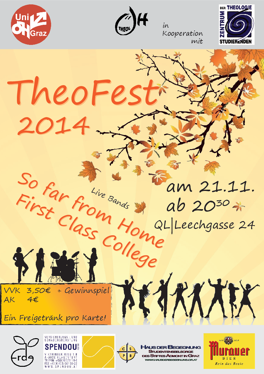 Vorverkauf ab 12.11. im ÖH-Theo-Büro, Heinrichstr. 78 und im Sekretariat der ÖH, Schubertstr. 6a