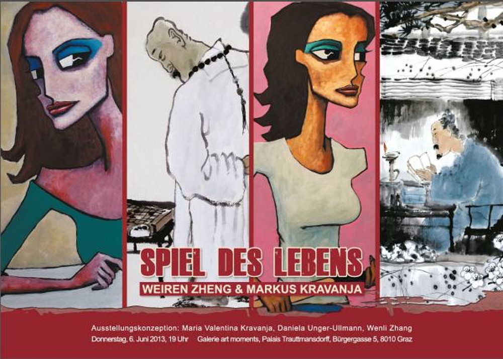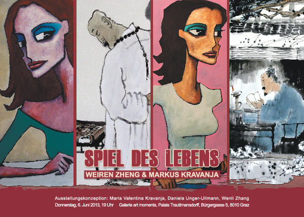 Weiren Zheng und Markus Kravanja - zwei in ihren Biographien und Techniken divergierende Künstler - treffen im Rahmen der Ausstellung "Spiel des Lebens" mit ihren Bildern aufeinander. Durch die Darstellung einzelner Lebensentwürfe werden interessante Gegensätze und überraschende Berührungspunkte deutlich, die den BesucherInnen der Ausstellung in der Galerie art moments einen einzigartigen Vergleich mit der chinesischen und westlichen Malerei ermöglichen.