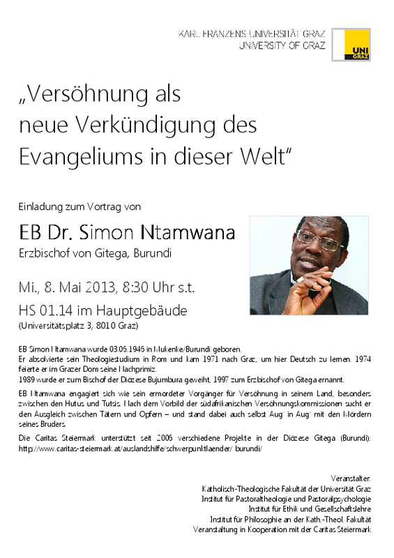 Einladung zum Vortrag von EB Dr. Simon Ntamwana, Erzbischof von Gitega, Burundi